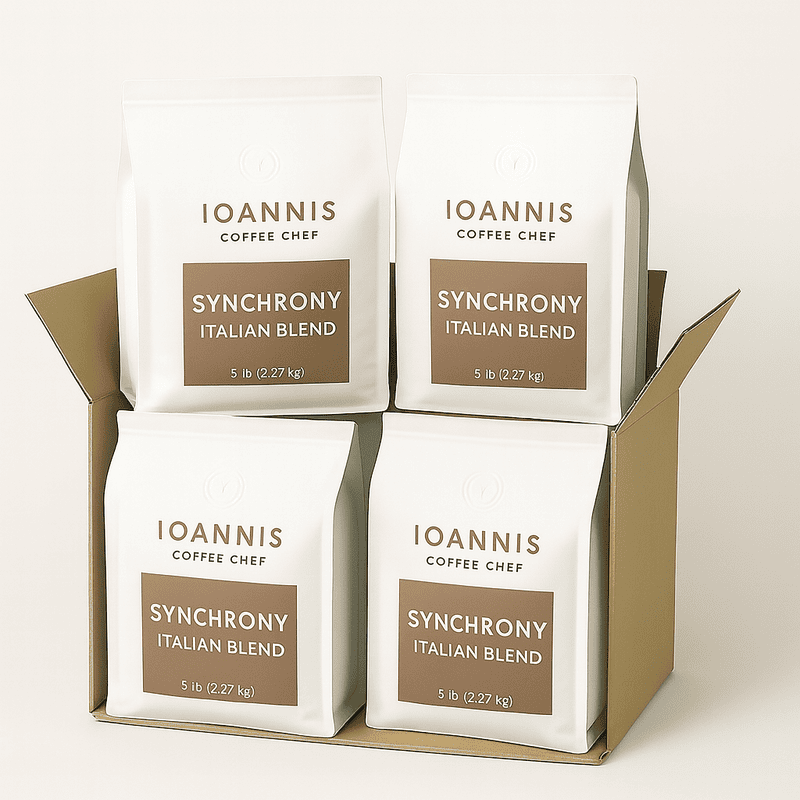 Synchrony Italian Espresso Roast is crafted in the classic Southern Italian tradition — deep, bold, and unapologetically intense. With rich dark chocolate, roasted almond, and a lingering smoky finish, this blend is designed for those who prefer a fuller-bodied, old-world espresso. Perfect for cafés, restaurants, and wholesale partners seeking a traditional Italian-style roast roasted fresh in Brooklyn.