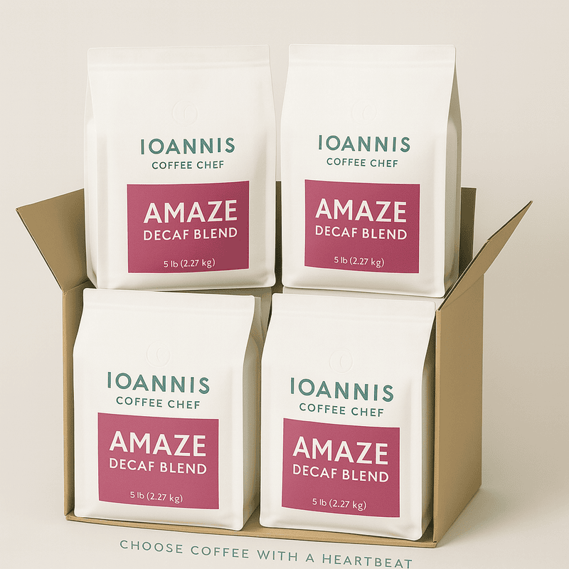 Amaze Decaf proves that decaf doesn’t have to compromise on flavor. This specialty-grade coffee is mountain water processed for a clean, chemical-free decaffeination. Expect notes of cocoa, toasted nuts, and a smooth finish — a cup that’s comforting and full-bodied without the caffeine. Perfect for cafés, restaurants, and hospitality programs that want to offer a high-quality decaf option.